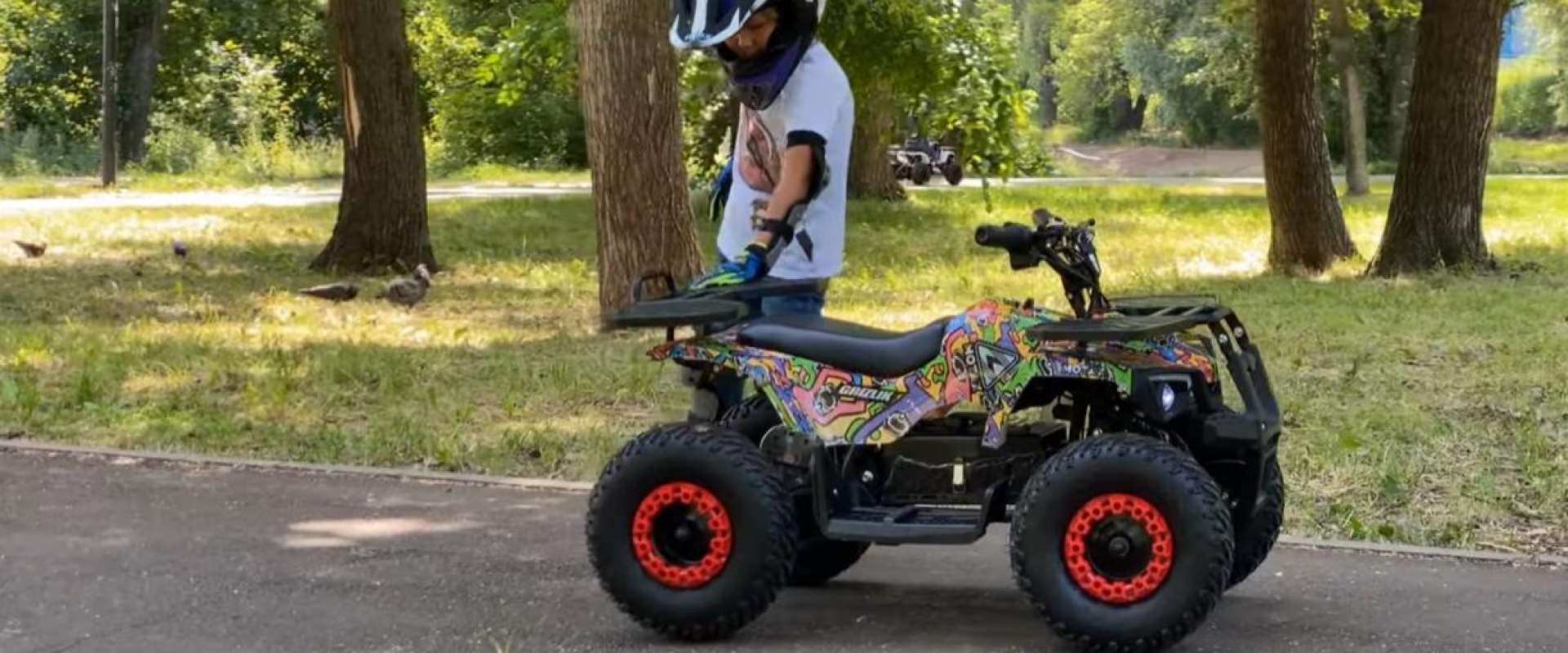 Квадроцикл оборудован 6-дюймовыми колёсами и шинами с внедорожным протектором