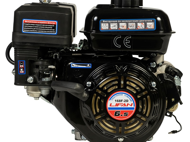 Бензиновый двигатель Lifan 168F-2D 3А - одна из самых популярных моделей линейки бензиновых двигателей Lifan. Разработан для установки на малую технику бытового применения. Эта модель сочетает в себе долговечность, экономичность с умеренной стоимостью и простотой в использовании. Двигатель дополнительно оснащен катушкой 3 Ампер, которая позволяет подключать полезное электрооборудование мощностью до 40 Ватт. Это четырехтактный одноцилиндровый двигатель внутреннего сгорания. Рабочий объем цилиндра составляет 196 кубических сантиметров. Диаметр цилиндра и тип газораспределительного механизма позволяют обеспечить компактные размеры двигателя, он свободно устанавливается на многие модели техники. В качестве топлива эта модель использует широко распространенный автомобильный бензин марки АИ-92, поэтому проблем с горючим не возникнет. Коленчатый вал имеет горизонтальное расположение. Крутящий момент достигает 11 Н.м при 2500 оборотов в минуту, при этом сохраняется высокая стабильность работы и небольшой расход бензина. Емкость топливного бака равна 3,6 литрам, одной заправки достаточно для длительной непрерывной работы. В качестве смазки используется доступное и известное каждому автомобилисту моторное масло 10х30, 10х40, для одной заправки маслом требуется не более 0.6 литра. Транзисторная система зажигания проста в обслуживании и долговечна, она способствует стабильной работе двигателя при любых условиях. Двигатель Lifan 168F-2D 3А обладает массой в 16,4 кг, это легковесный и компактный агрегат, он способен обеспечить высокую продуктивность работы при минимальных затратах и потерях. Его простая конструкция не создаст проблем при установке или при обслуживании, использование эффективного воздушного охлаждения позволяет активно использовать мотор даже в жаркую погоду, удобный пусковой тросик обеспечивает легкий запуск двигателя. Преимущества двигателя Lifan 168F-2D (ДБГ-6,5): -Двигатель 4х тактный, одноцилиндровый, OHV, горизонтальный вал, воздушное охлаждение. -Зажигание электронное. -Система запуска - электростарт и ручной старт. -Легкий пуск система декомпрессии. -Продуманная конструкция малый вес и габариты.