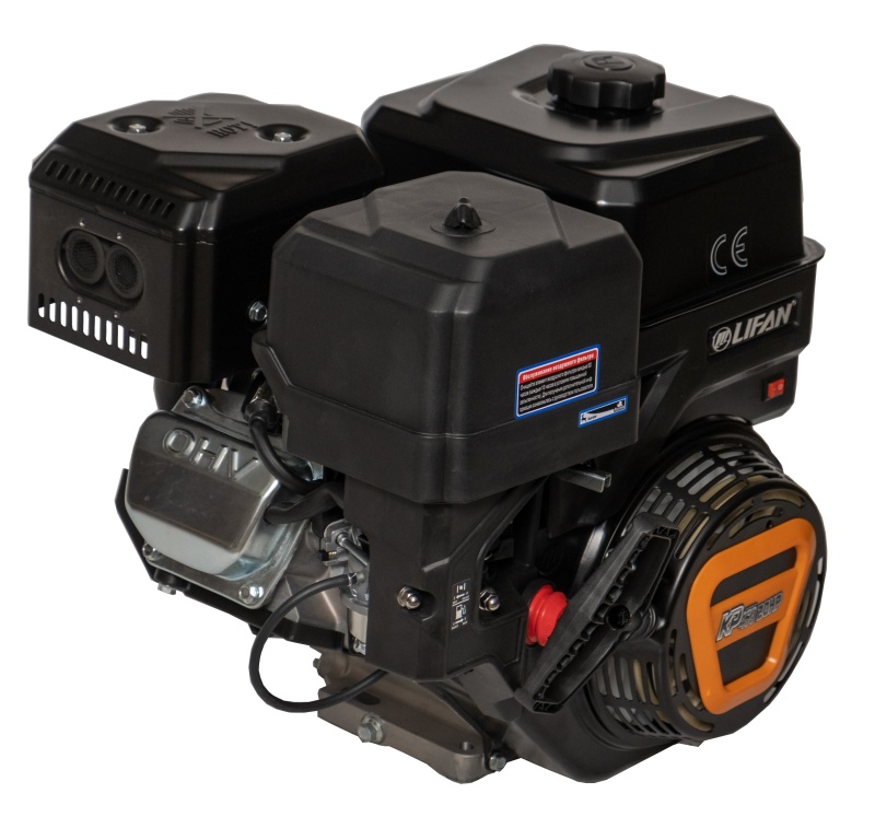 Бензиновый двигатель Lifan KP460 7А разработан для установки на различную технику бытового применения. Эта модель сочетает в себе долговечность и экономичность с умеренной стоимостью и простотой в использовании. Дополнительно оснащен катушкой 7 Ампер, которая позволяет подключать полезное электрооборудование мощностью до 90 Ватт. Четырехтактный одноцилиндровый двигатель внутреннего сгорания. Рабочий объем цилиндра составляет 460 кубических сантиметров. Коленчатый вал имеет горизонтальное расположение. Крутящий момент достигает 32 Н.м при 2880 оборотов в минуту, при этом сохраняется высокая стабильность работы и небольшой расход бензина. Емкость топливного бака равна 6,5 литров, одной заправки достаточно для длительной непрерывной работы. В качестве смазки используется доступное и известное каждому автомобилисту моторное масло 10х30, 10х40, для одной заправки маслом требуется не более 1.1 литра. Транзисторная система зажигания проста в обслуживании и долговечна, она способствует стабильной работе двигателя при любых условиях. Двигатель Lifan KP460 обладает массой в 31,9 кг. Его простая конструкция не создаст проблем при установке или при обслуживании, использование эффективного воздушного охлаждения позволяет активно использовать мотор даже в жаркую погоду. На данном двигателе имеется праймер для легкого запуска двигателя, производительная крыльчатка, которая позволяет отводить тепло на 30% эффективнее и новая головка цилиндра с V-образным расположением клапанов для повышения качества топливной смеси. Особенность этого двигателя — шатуны на вкладышах. Преимущества двигателя Lifan KP460: -Двигатель 4х тактный, одноцилиндровый, OHV, горизонтальный вал, воздушное охлаждение. -Зажигание электронное. -Система запуска ручной старт. -Легкий пуск, система декомпрессии.