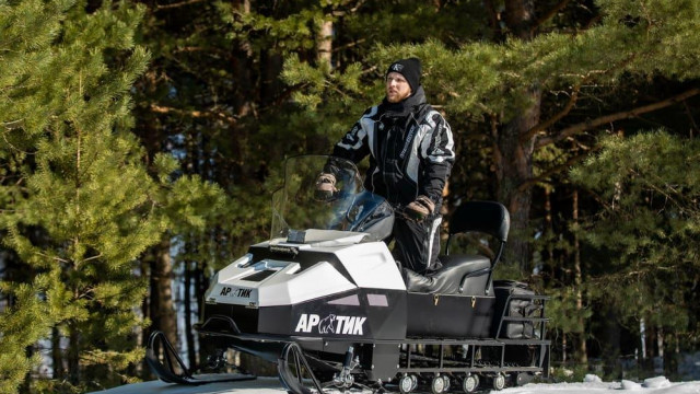 Утилитарный одногусеничный снегоход в длинной базе 2900 мм с двумя лыжами.