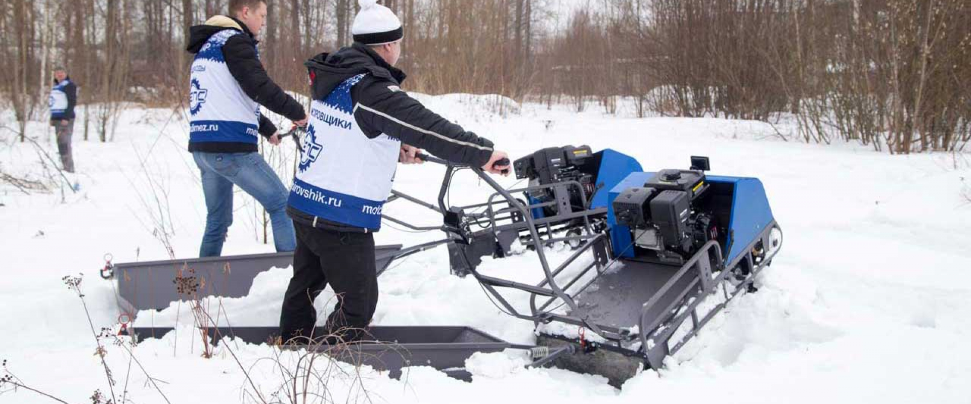 Компактный мотобуксировщик начального уровня для буксировки саней и грузов.